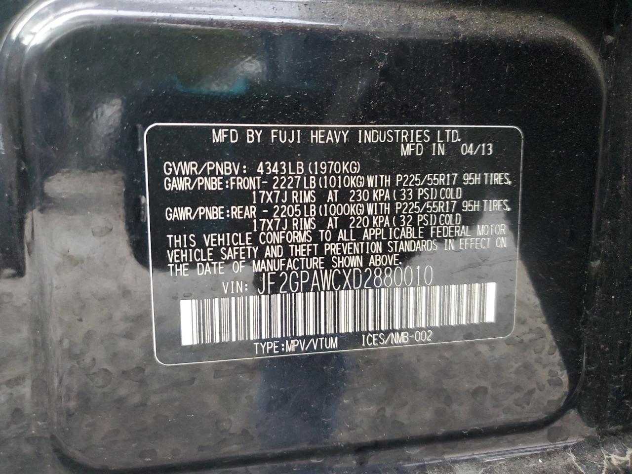 SUBARU XV 2.0 2013 г.в., Полный привод (JF2GPAWCXD2880010) из США