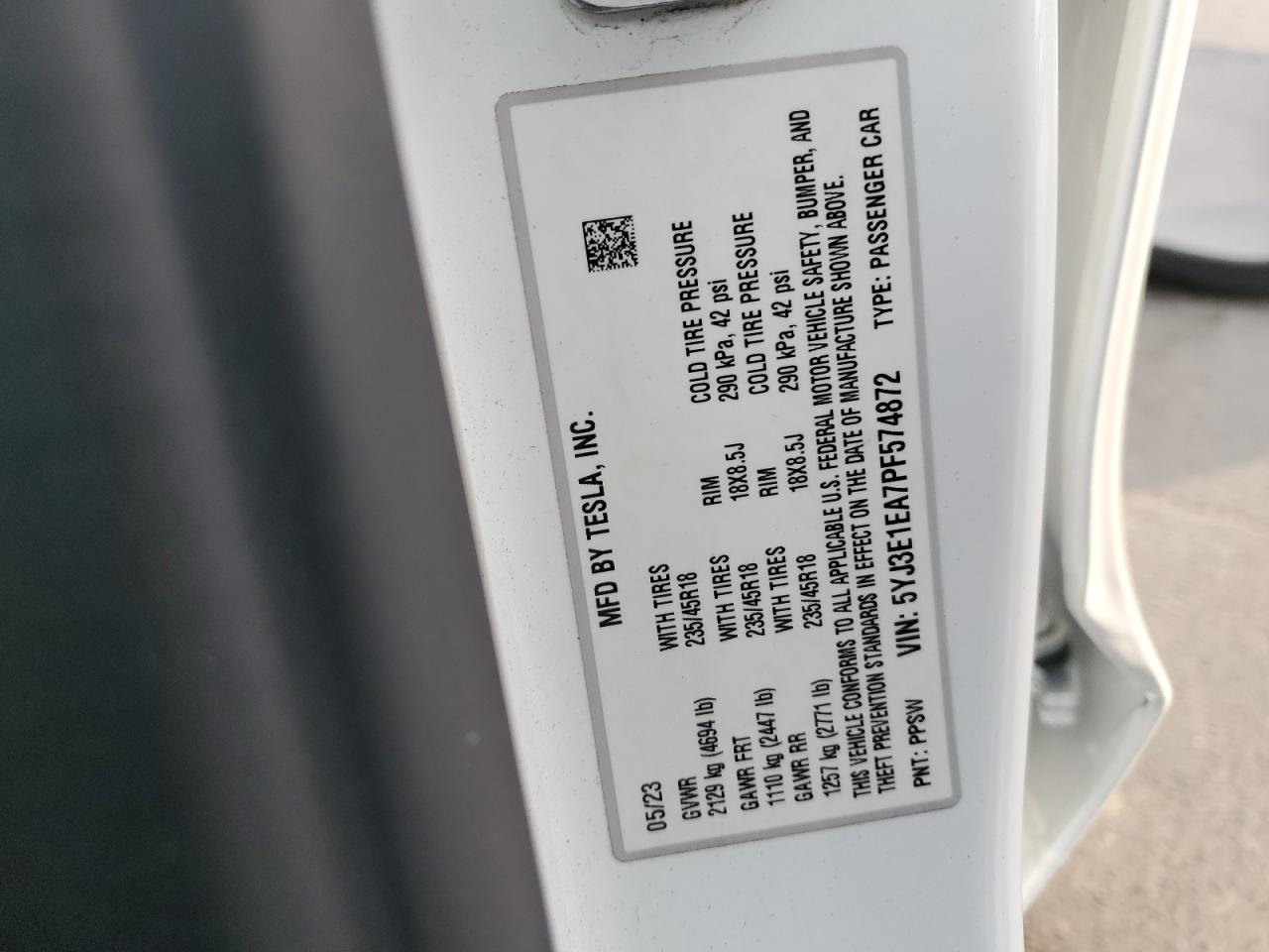 TESLA MODEL 3 2023 г.в., Задний привод (5YJ3E1EA7PF574872) из США