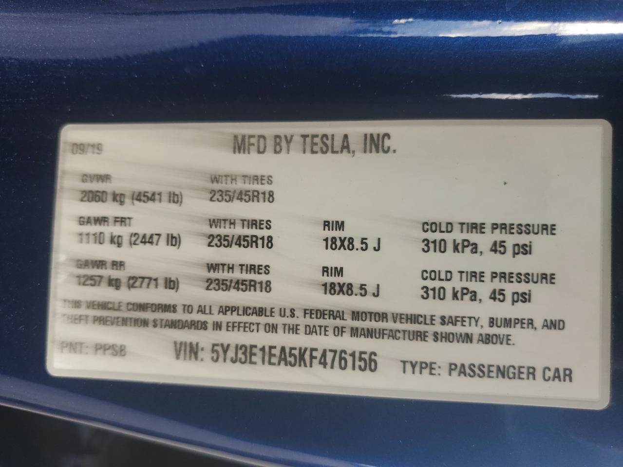 TESLA MODEL 3 2019 г.в., Задний привод (5YJ3E1EA5KF476156) из США
