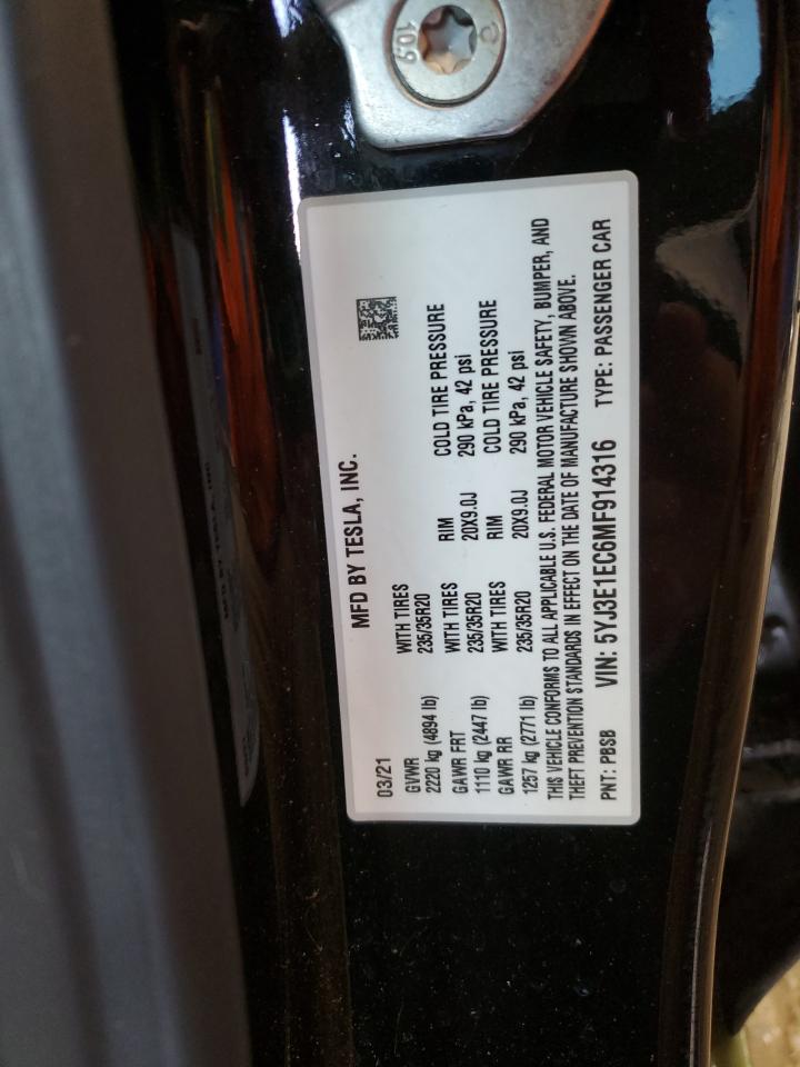 TESLA MODEL 3 2021 г.в., Полный привод (5YJ3E1EC6MF914316) из США