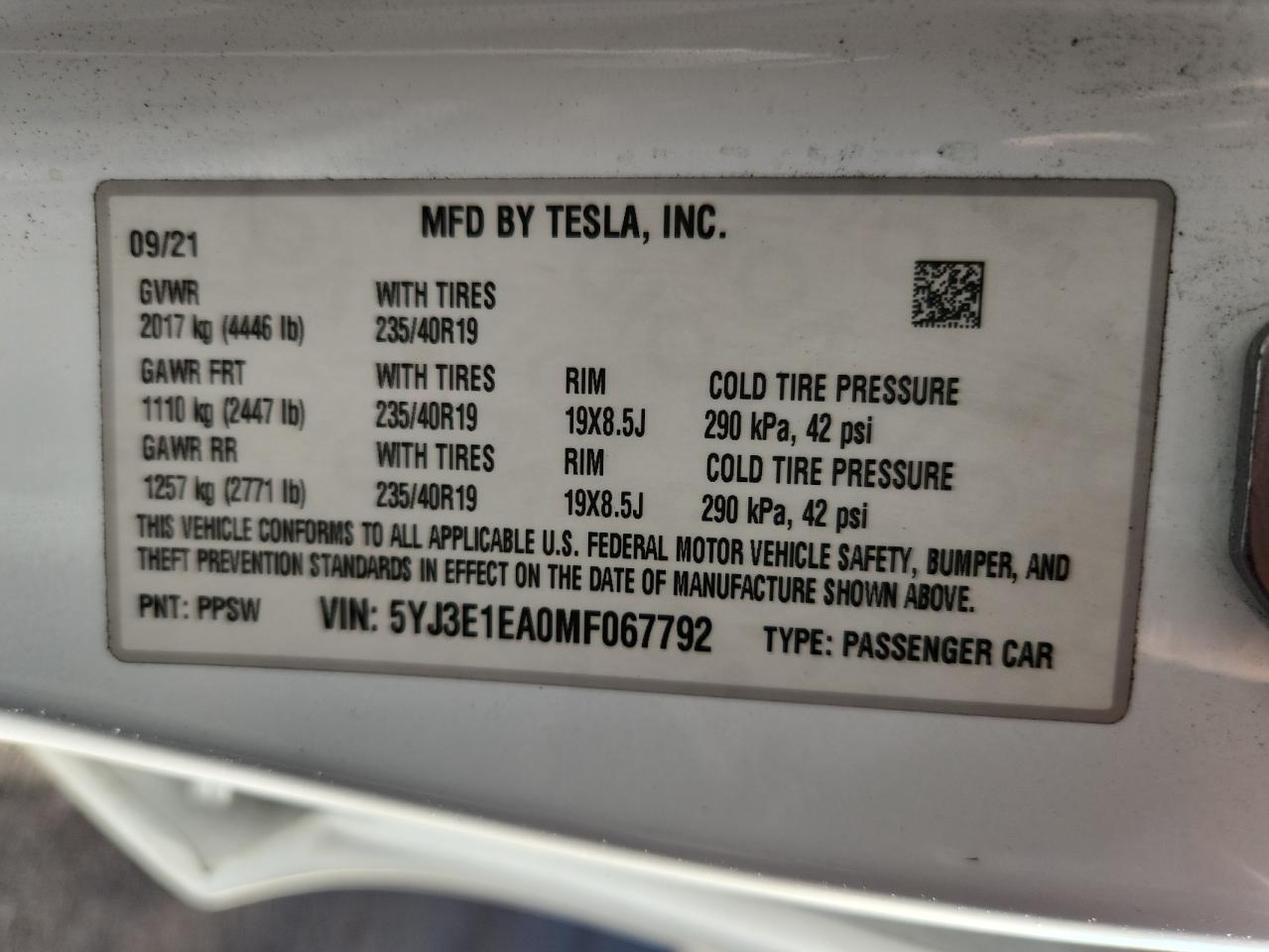 TESLA MODEL 3 2021 г.в., Задний привод (5YJ3E1EA0MF067792) из США