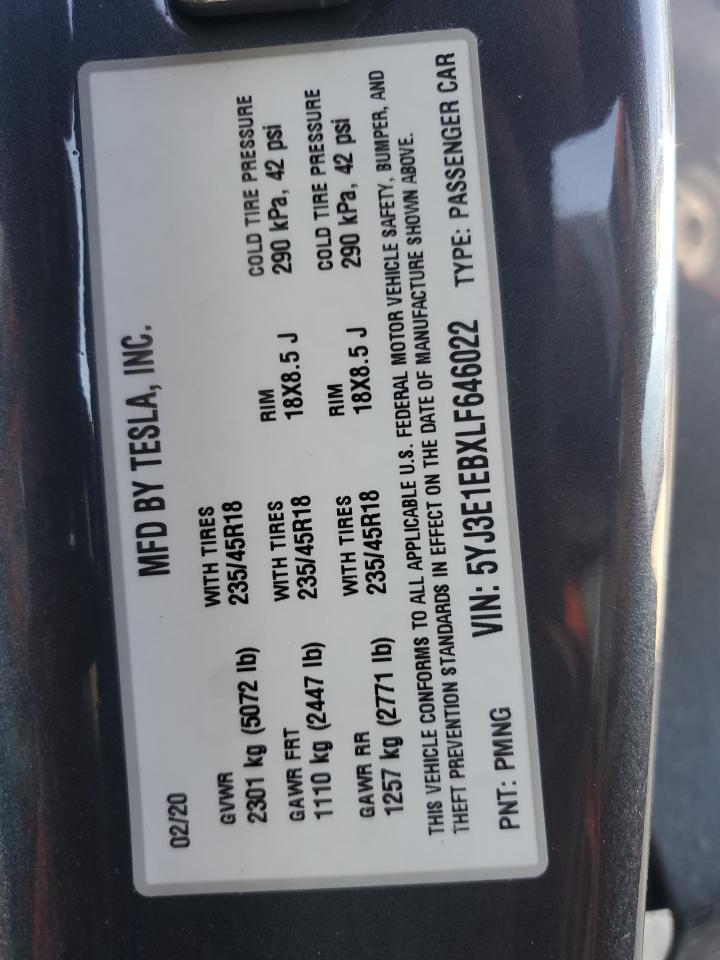 TESLA MODEL 3 2020 г.в., Полный привод (5YJ3E1EBXLF646022) из США