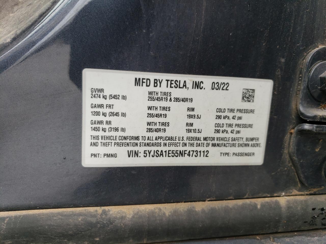 TESLA MODEL S 2022 г.в., Полный привод (5YJSA1E55NF473112) из США