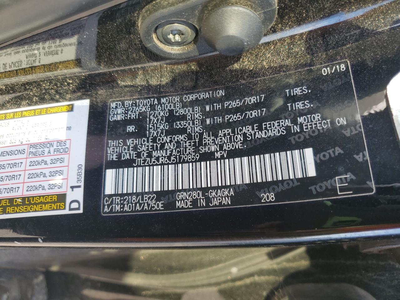 2018 TOYOTA 4RUNNER LIMITED/SR5/SR5 PREMIUM/TRD OFF ROAD/TRD OFF ROAD PREMIUM/TRD PRO