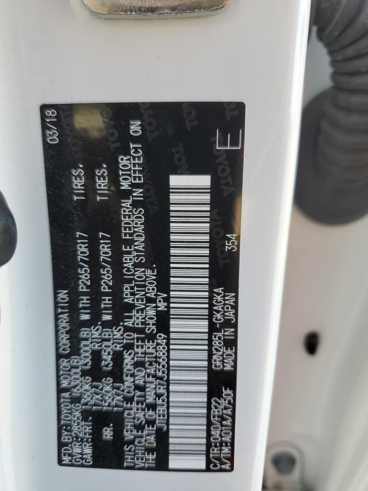 TOYOTA 4RUNNER 4.0 2018 г.в., 4x4 с задним приводом (JTEBU5JR7J5568849) из США