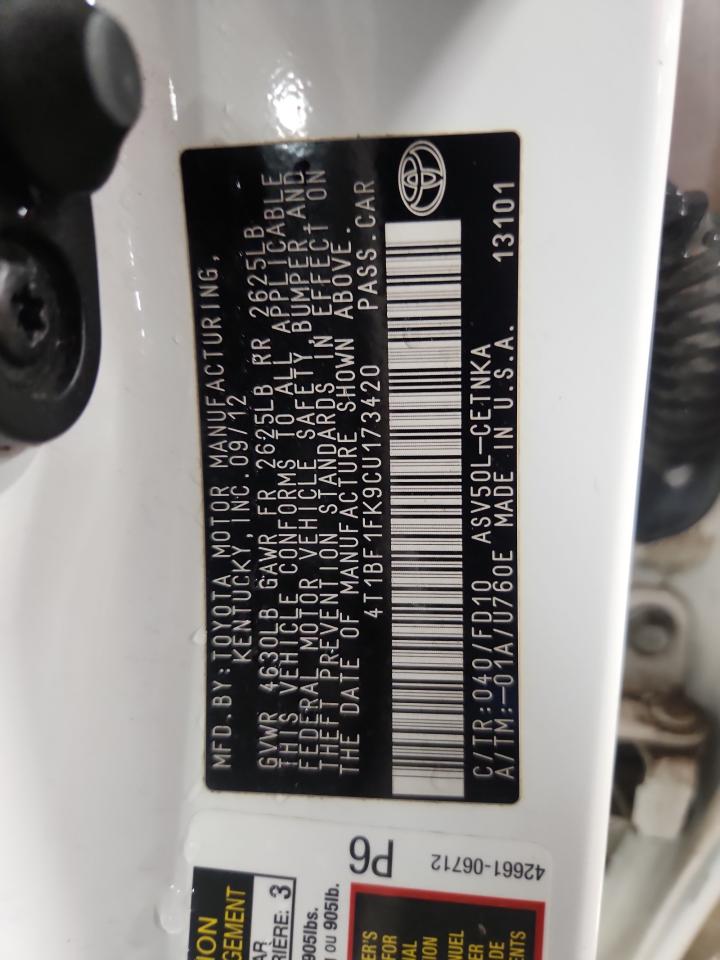 TOYOTA CAMRY 2.5 2012 г.в., (4T1BF1FK9CU173420) из США