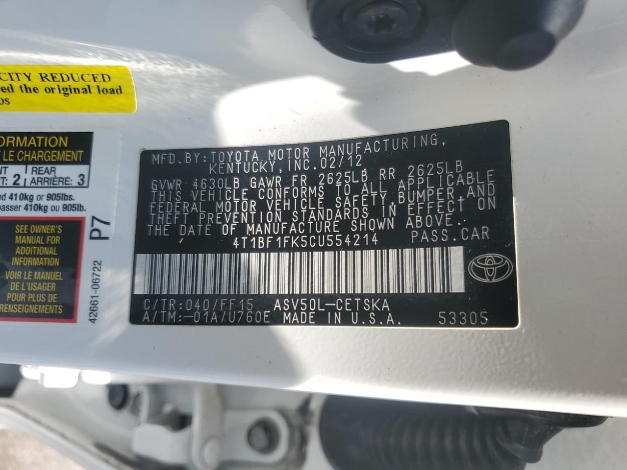 TOYOTA CAMRY 2.5 2012 г.в., (4T1BF1FK5CU554214) из США