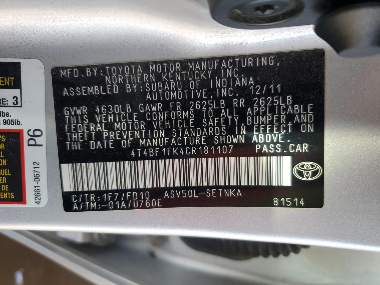 TOYOTA CAMRY 2.5 2012 г.в., (4T4BF1FK4CR181107) из США