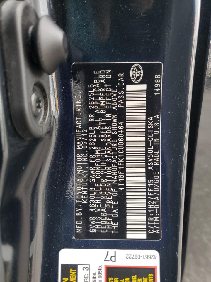 TOYOTA CAMRY 2.5 2012 г.в., (4T1BF1FK1CU060464) из США