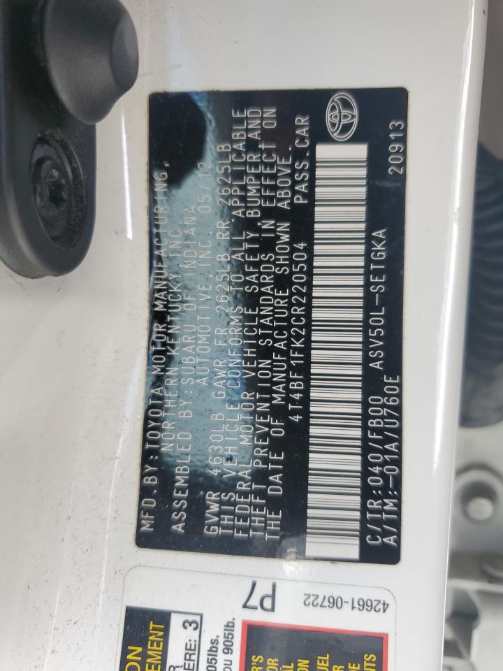 TOYOTA CAMRY 2.5 2012 г.в., (4T4BF1FK2CR220504) из США