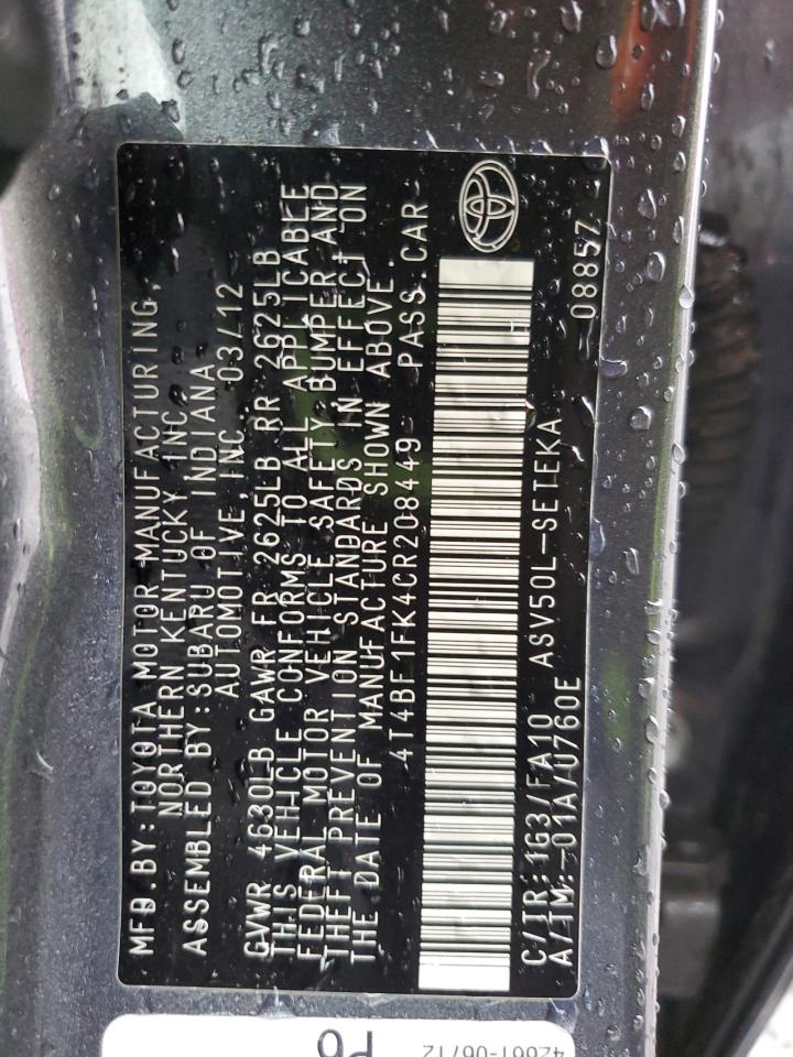 TOYOTA CAMRY 2.5 2012 г.в., (4T4BF1FK4CR208449) из США
