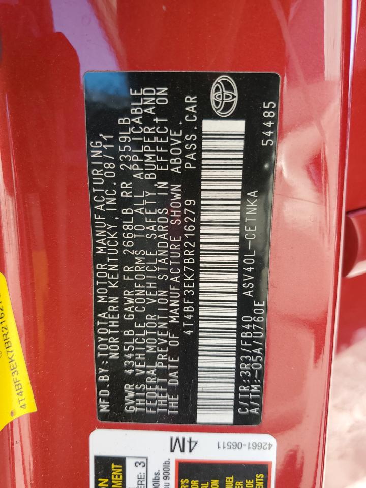 Цвет КрасныйЦилиндры 4VIN 4T4BF3EK7BR216279Состояние Заводится и едет (проверено)Повреждение Передняя или задняя