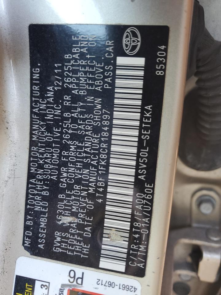 TOYOTA CAMRY 2.5 2012 г.в., (4T4BF1FK8CR184897) из США