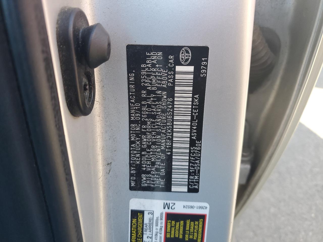 Цвет СеребряныйЦилиндры 4VIN 4T1BF3EK5BU652476Состояние Заводится и едет (проверено)Повреждение Передняя или задняя