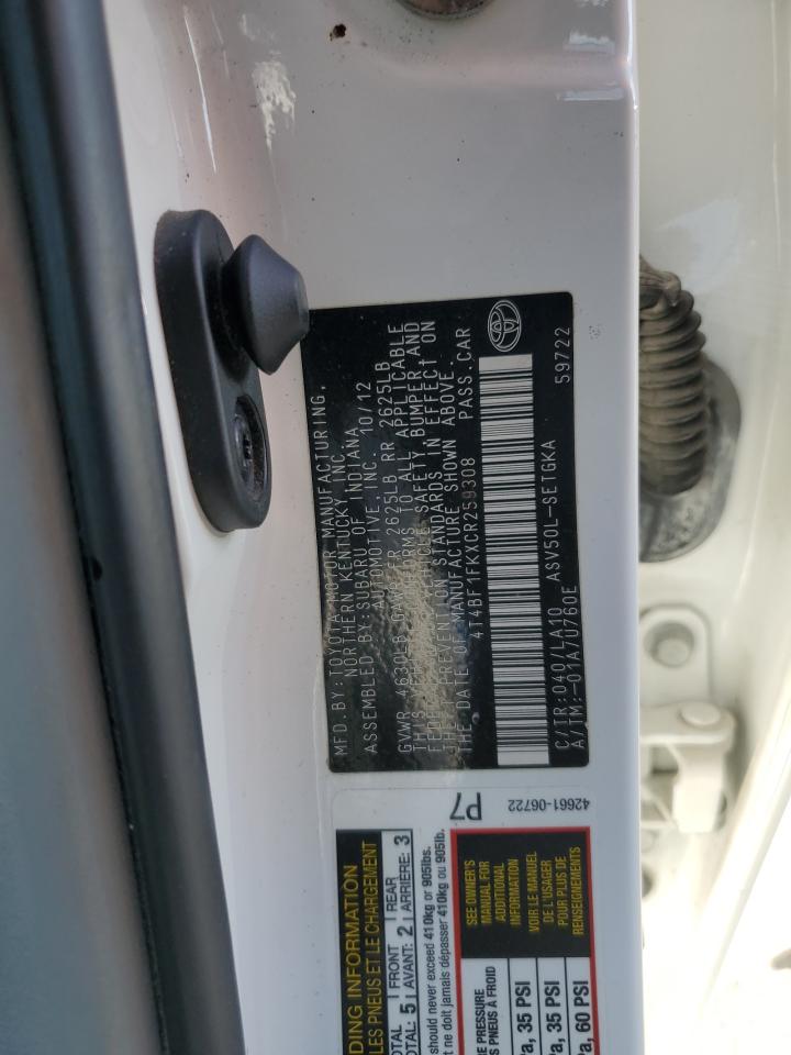 TOYOTA CAMRY 2.5 2012 г.в., (4T4BF1FKXCR259308) из США