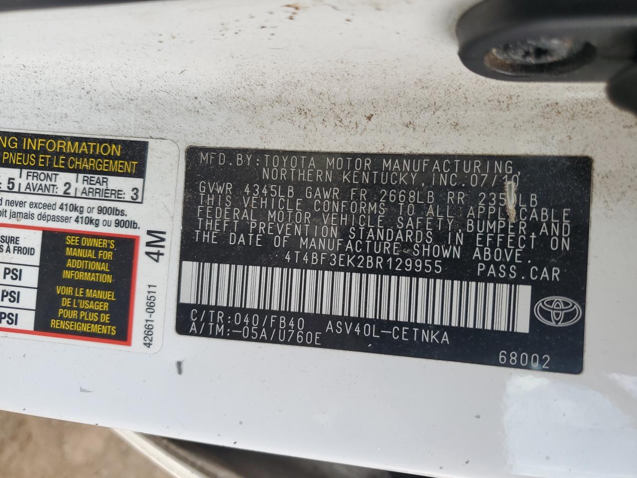 2011 TOYOTA CAMRY BASE