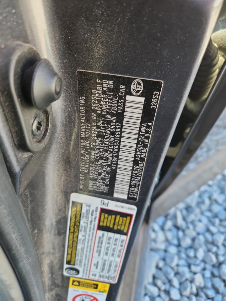 Цвет СерыйЦилиндры 4VIN 4T1BF1FK6CU189817Состояние НеизвестноПовреждение Передняя или задняя