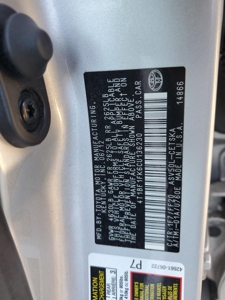 Цвет СеребряныйЦилиндры 4VIN 4T1BF1FK6CU136230Состояние Заводится и едет (проверено)Повреждение Передняя или задняя
