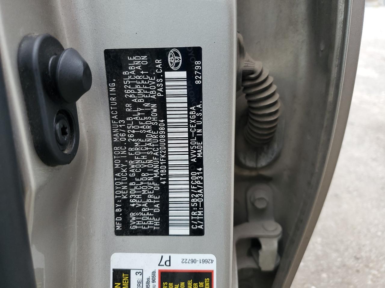 TOYOTA CAMRY HYBRID 2.5 2013 г.в., (4T1BD1FK2DU089804) из США