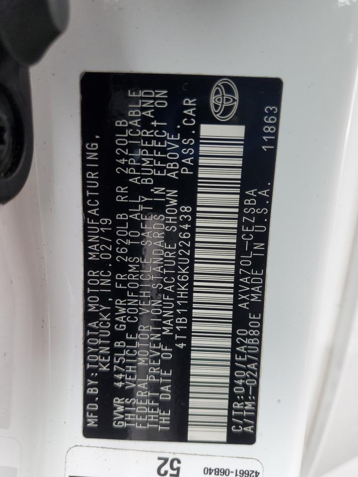 TOYOTA CAMRY 2.5 2019 г.в., (4T1B11HK6KU226438) из США
