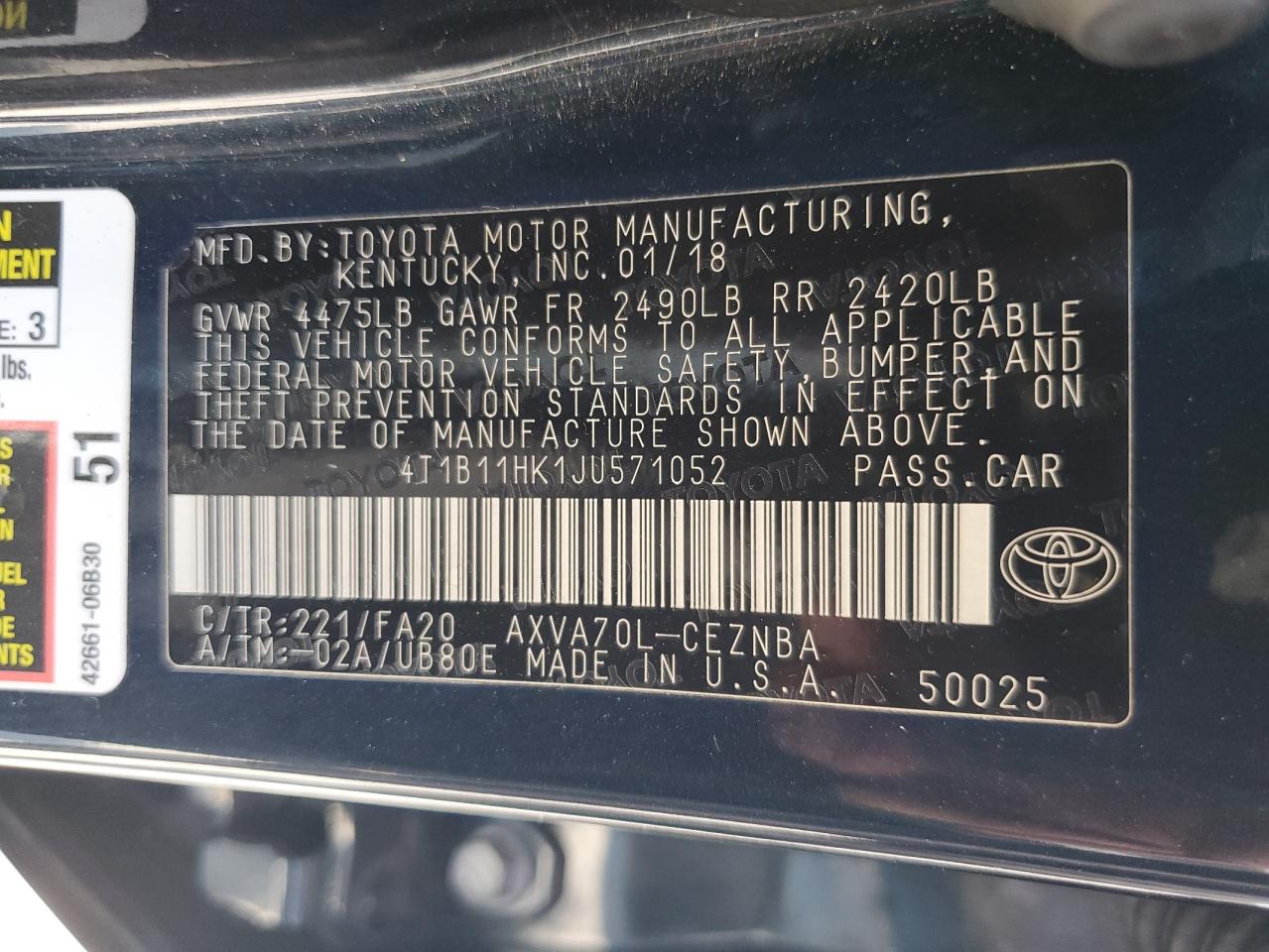 TOYOTA CAMRY 2.5 2018 г.в., (4T1B11HK1JU571052) из США