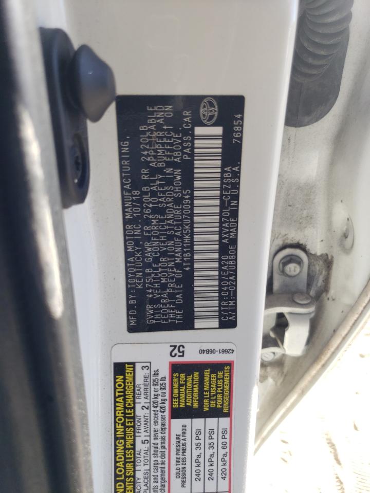 TOYOTA CAMRY 2.5 2019 г.в., (4T1B11HK5KU700945) из США