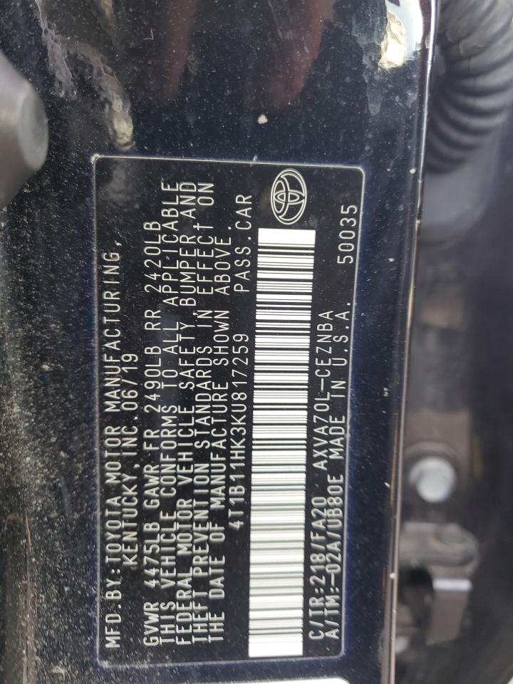 TOYOTA CAMRY 2.5 2019 г.в., (4T1B11HK3KU817259) из США