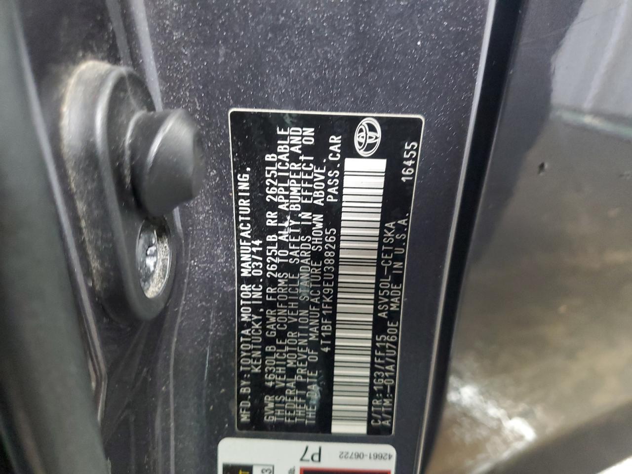 TOYOTA CAMRY 2.5 2014 г.в., (4T1BF1FK9EU388265) из США