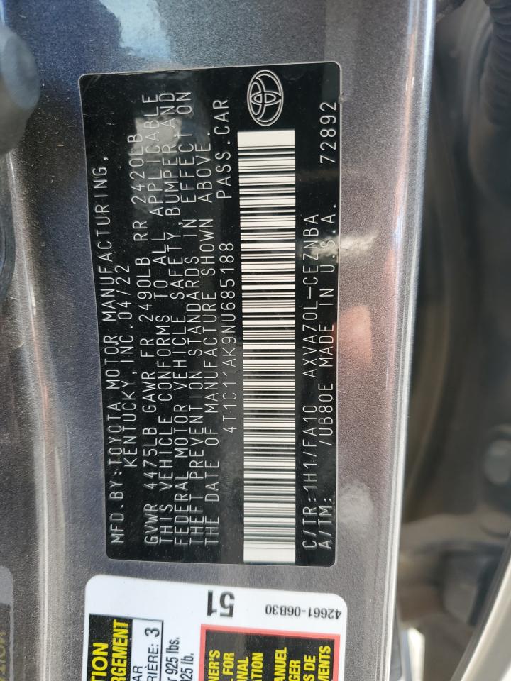 TOYOTA CAMRY 2.5 2022 г.в., (4T1C11AK9NU685188) из США