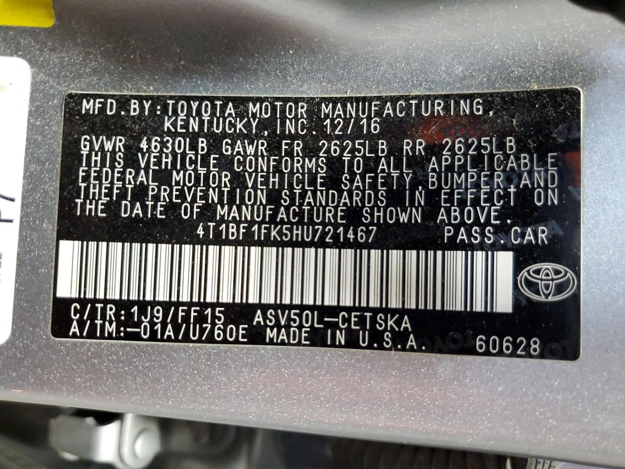 TOYOTA CAMRY 2.5 2017 г.в., (4T1BF1FK5HU721467) из США