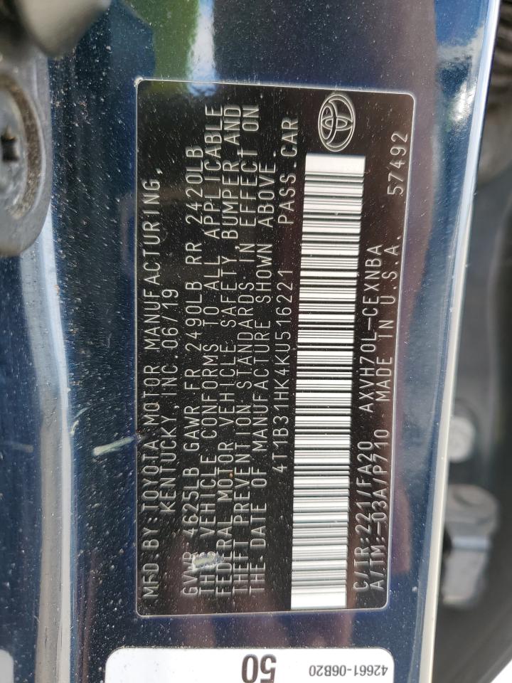 TOYOTA CAMRY 2.5 2019 г.в., (4T1B31HK4KU516221) из США
