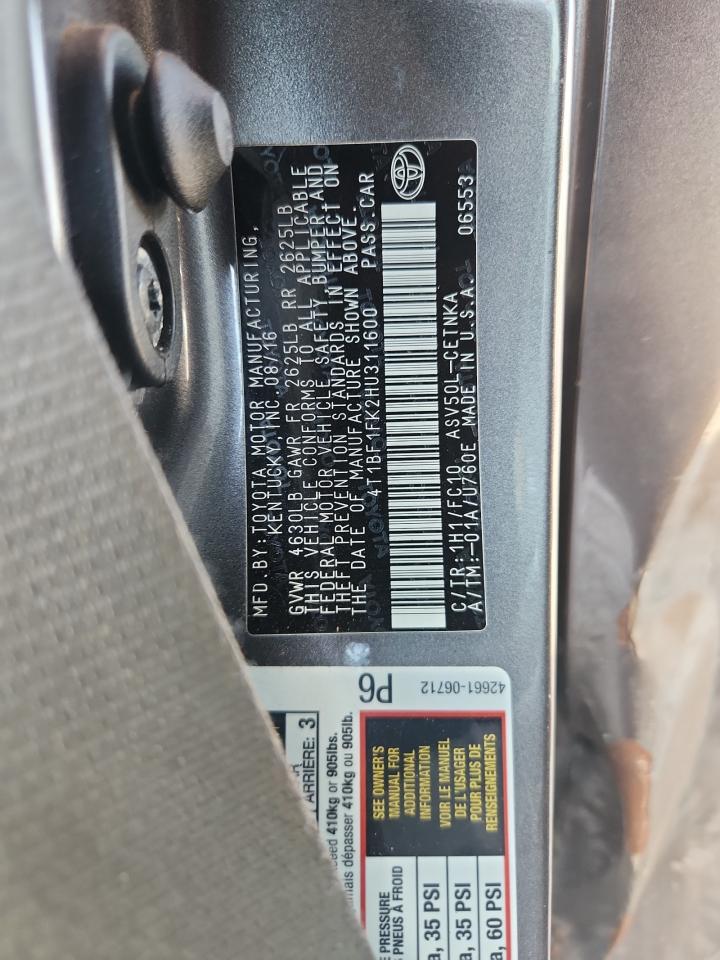 TOYOTA CAMRY 2.5 2017 г.в., (4T1BF1FK2HU311600) из США