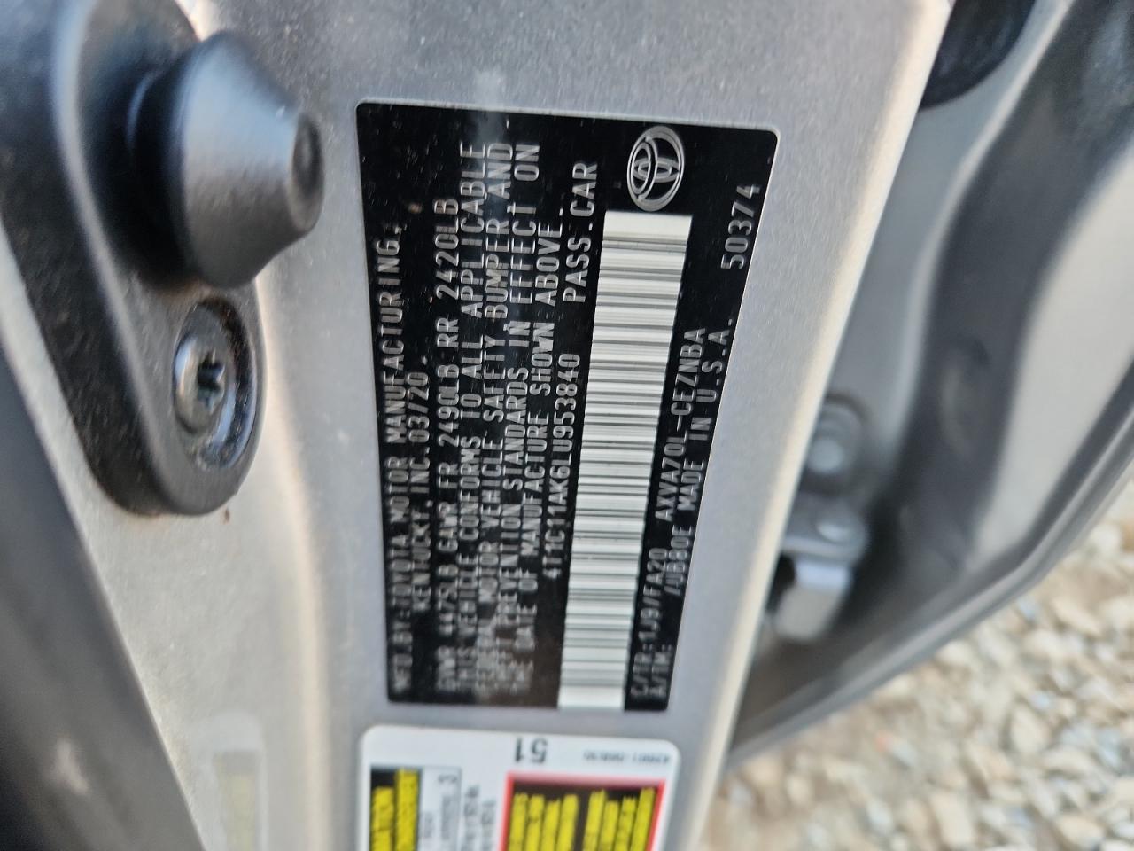 TOYOTA CAMRY 2.5 2020 г.в., (4T1C11AK6LU953840) из США
