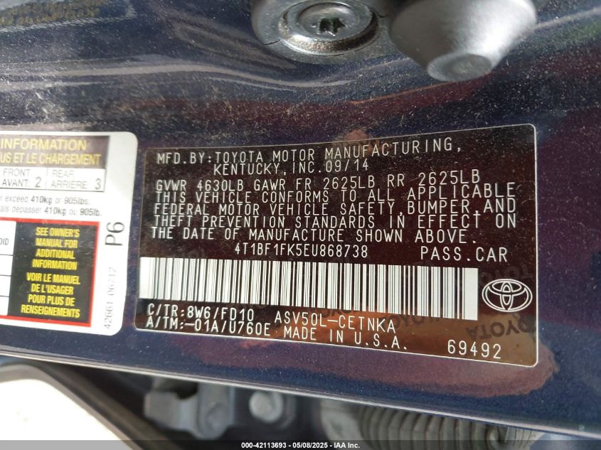 2014 TOYOTA CAMRY L/LE/XLE/SE/SE SPORT