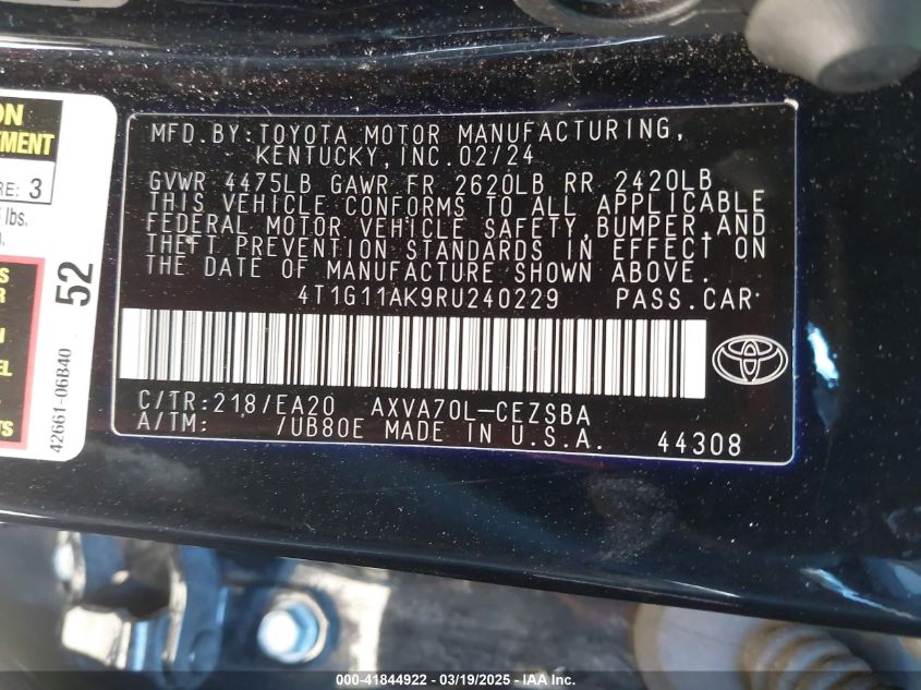 TOYOTA CAMRY 2.5 2024 г.в., Передний привод (4T1G11AK9RU240229) из США