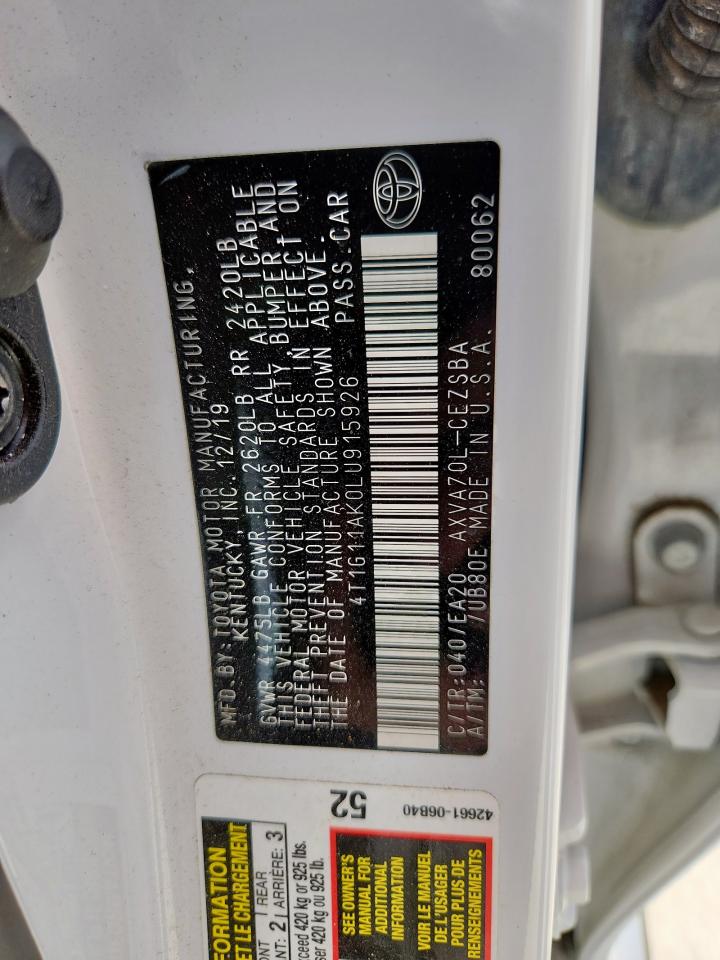 TOYOTA CAMRY 2.5 2020 г.в., (4T1G11AK0LU915926) из США