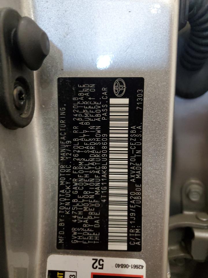 TOYOTA CAMRY 2.5 2020 г.в., (4T1G11AK8LU908609) из США