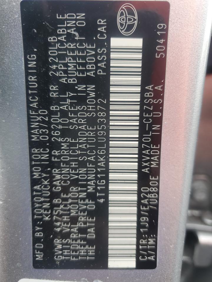 TOYOTA CAMRY 2.5 2020 г.в., (4T1G11AK6LU953872) из США