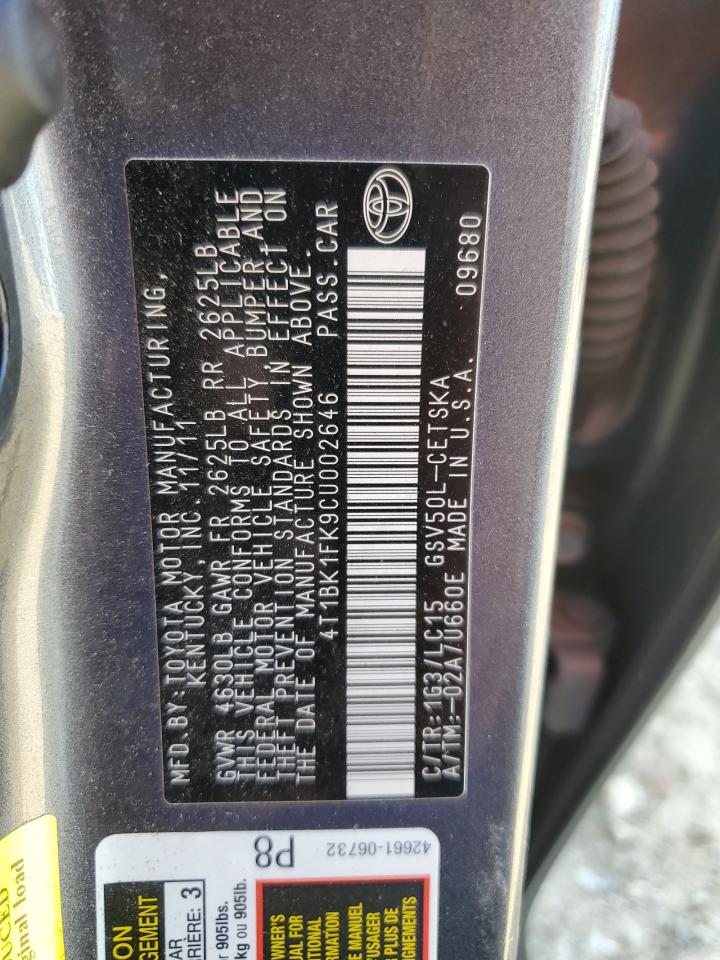 TOYOTA CAMRY 3.5 2012 г.в., (4T1BK1FK9CU002646) из США