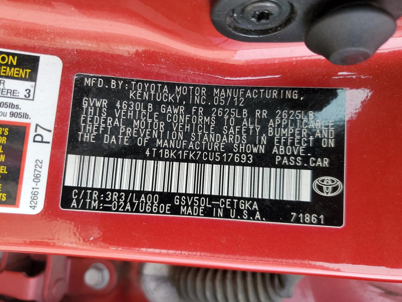 TOYOTA CAMRY 3.5 2012 г.в., (4T1BK1FK7CU517693) из США