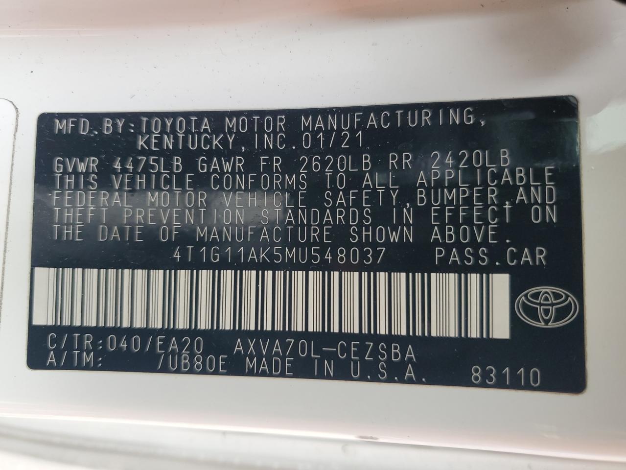 TOYOTA CAMRY 2.5 2021 г.в., (4T1G11AK5MU548037) из США