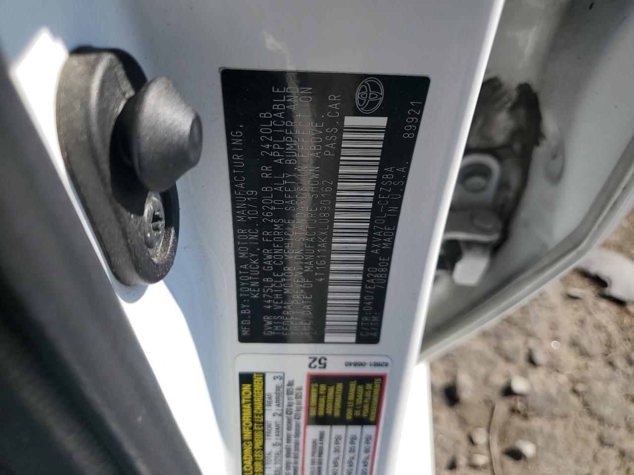 TOYOTA CAMRY 2.5 2020 г.в., (4T1G11AKXLU890162) из США