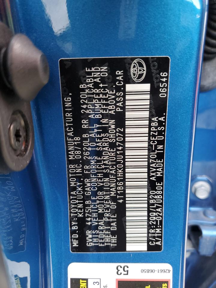 TOYOTA CAMRY 2.5 2018 г.в., (4T1B61HK0JU147072) из США