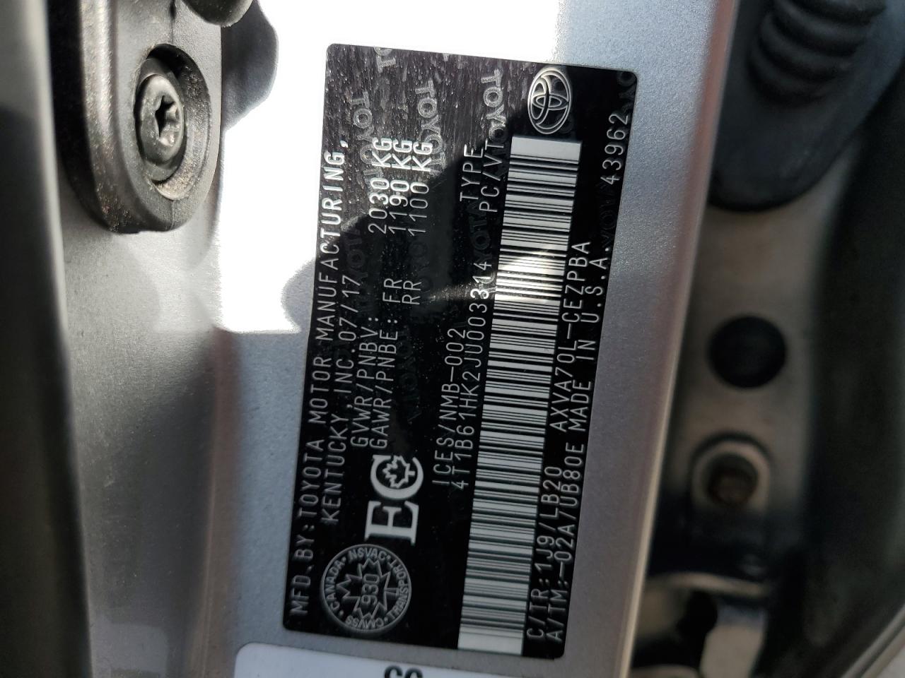 2018 TOYOTA CAMRY L