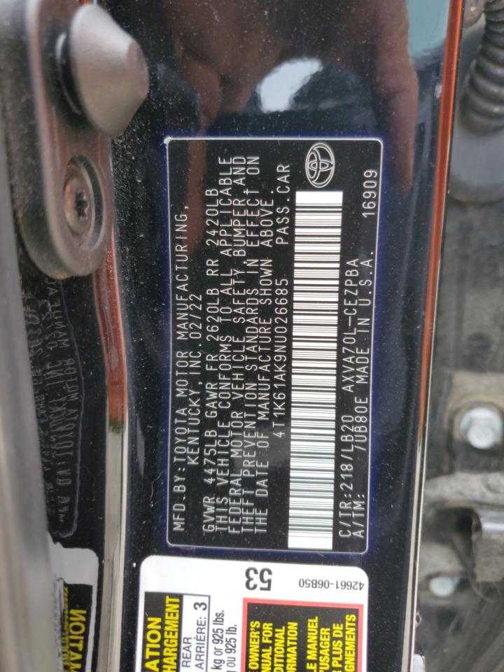 TOYOTA CAMRY 2.5 2022 г.в., (4T1K61AK9NU026685) из США