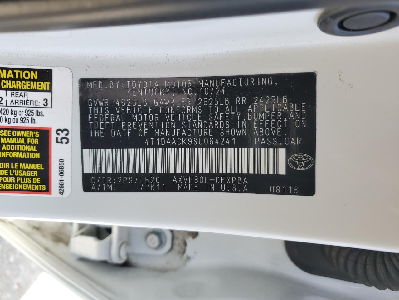 Цвет БелыйЦилиндры 4VIN 4T1DAACK9SU064241Состояние ЗаводитсяПовреждение Передняя или задняяДата аукциона 2025-11-18