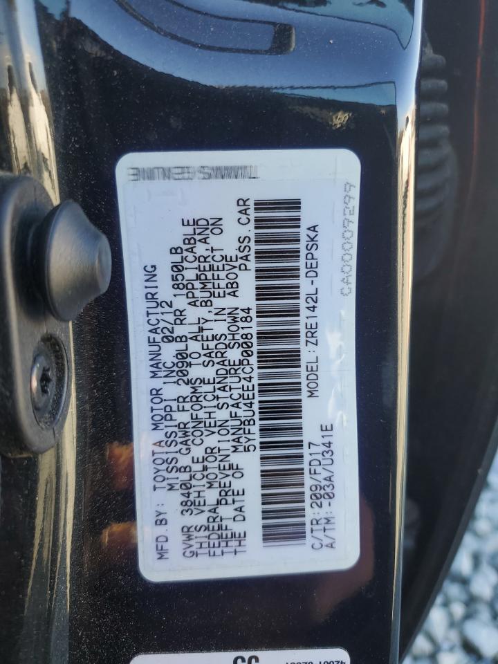 TOYOTA COROLLA 1.8 2012 г.в., (5YFBU4EE4CP008184) из США