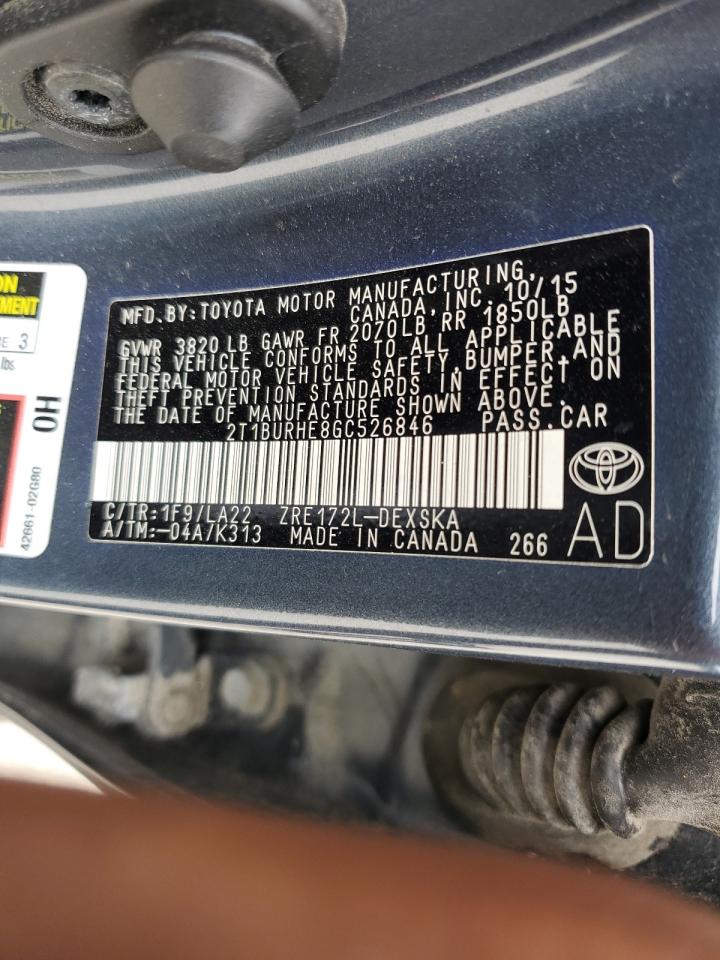 TOYOTA COROLLA 1.8 2016 г.в., (2T1BURHE8GC526846) из США