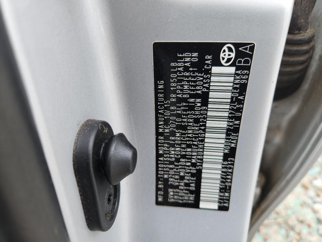 TOYOTA COROLLA 1.8 2016 г.в., (5YFBURHE1GP412509) из США