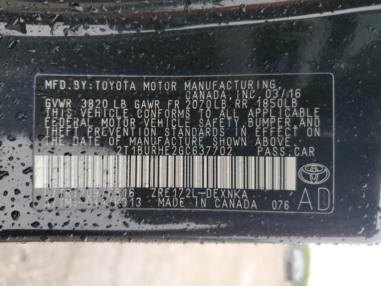 TOYOTA COROLLA 1.8 2016 г.в., (2T1BURHE2GC637702) из США